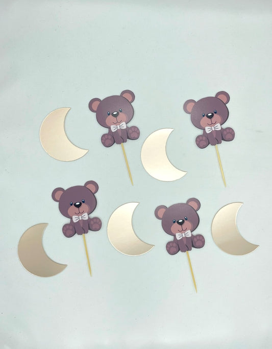 Cupcake prikkers Beer en Maan 12 stuks