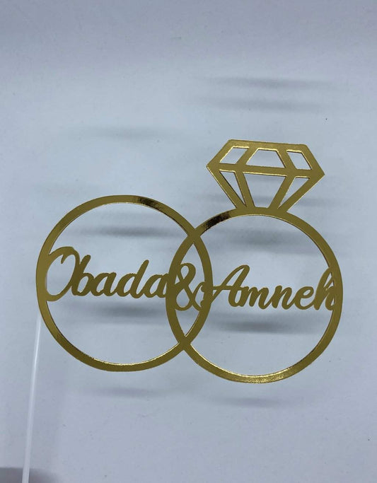 Cake Topper Verloving Diamanten Ringen met Namen
