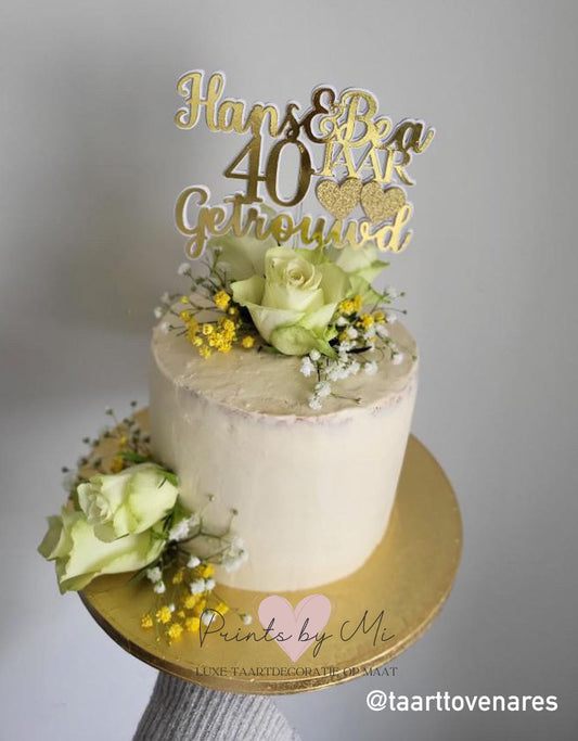 Taarttopper Naam met bloemen