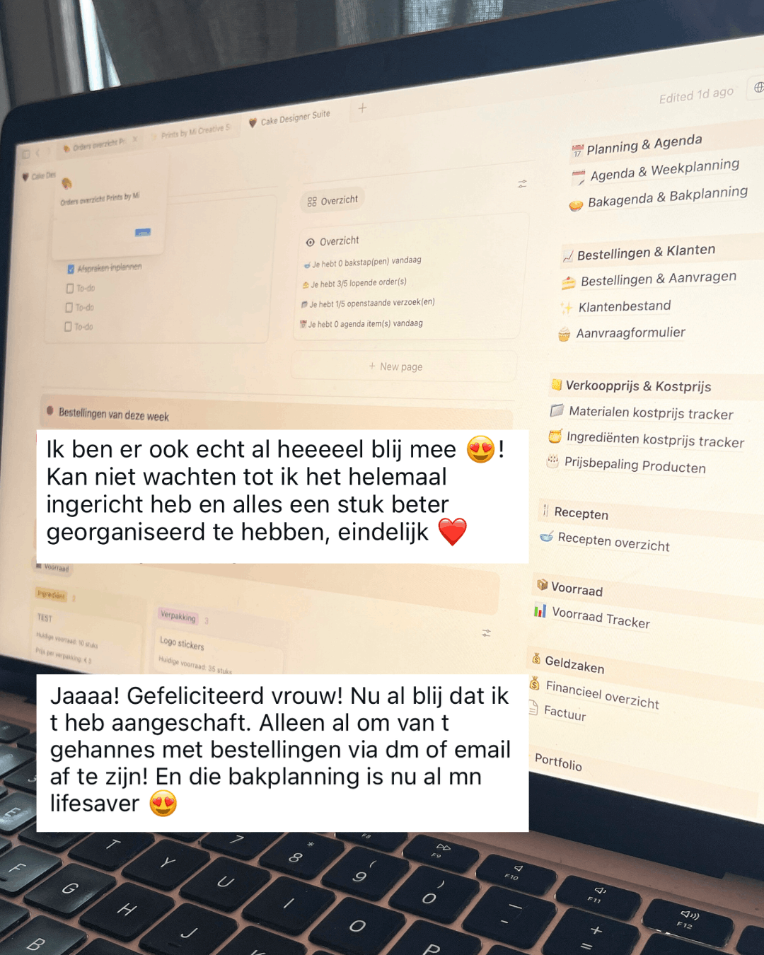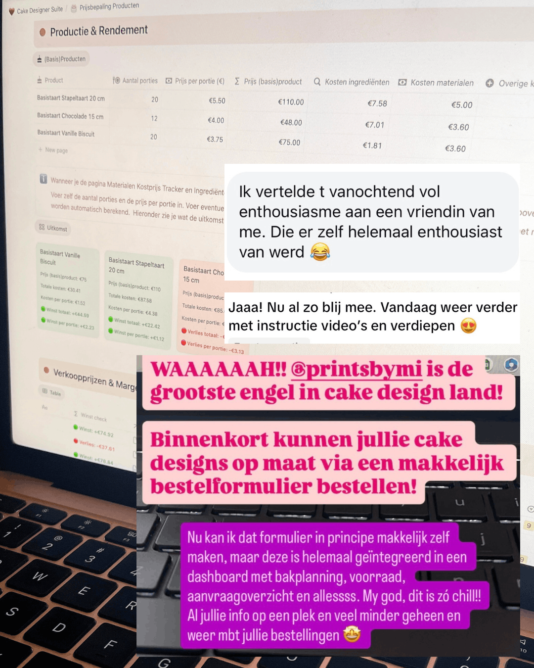 De Cake Designer Suite is ontstaan uit mijn eigen behoefte aan meer rust, overzicht en minder “alles-in-mijn-hoofd”. Het is dus geen concept, maar een verzameling systemen die ik zelf gebruik — en die perfect werken voor creatieve ondernemers zoals jij 🤍